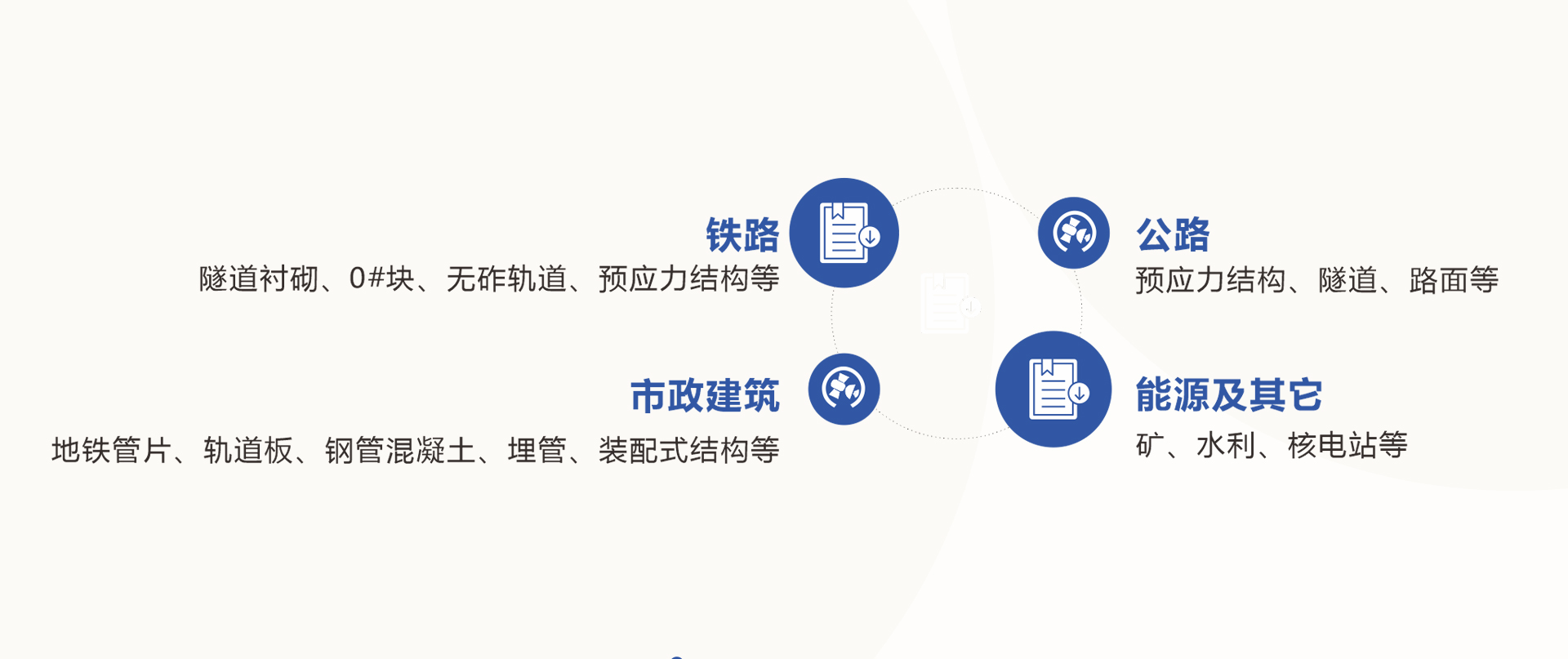市政建筑:地铁管片、轨道板、钢管混凝土、埋管、装配式结构等